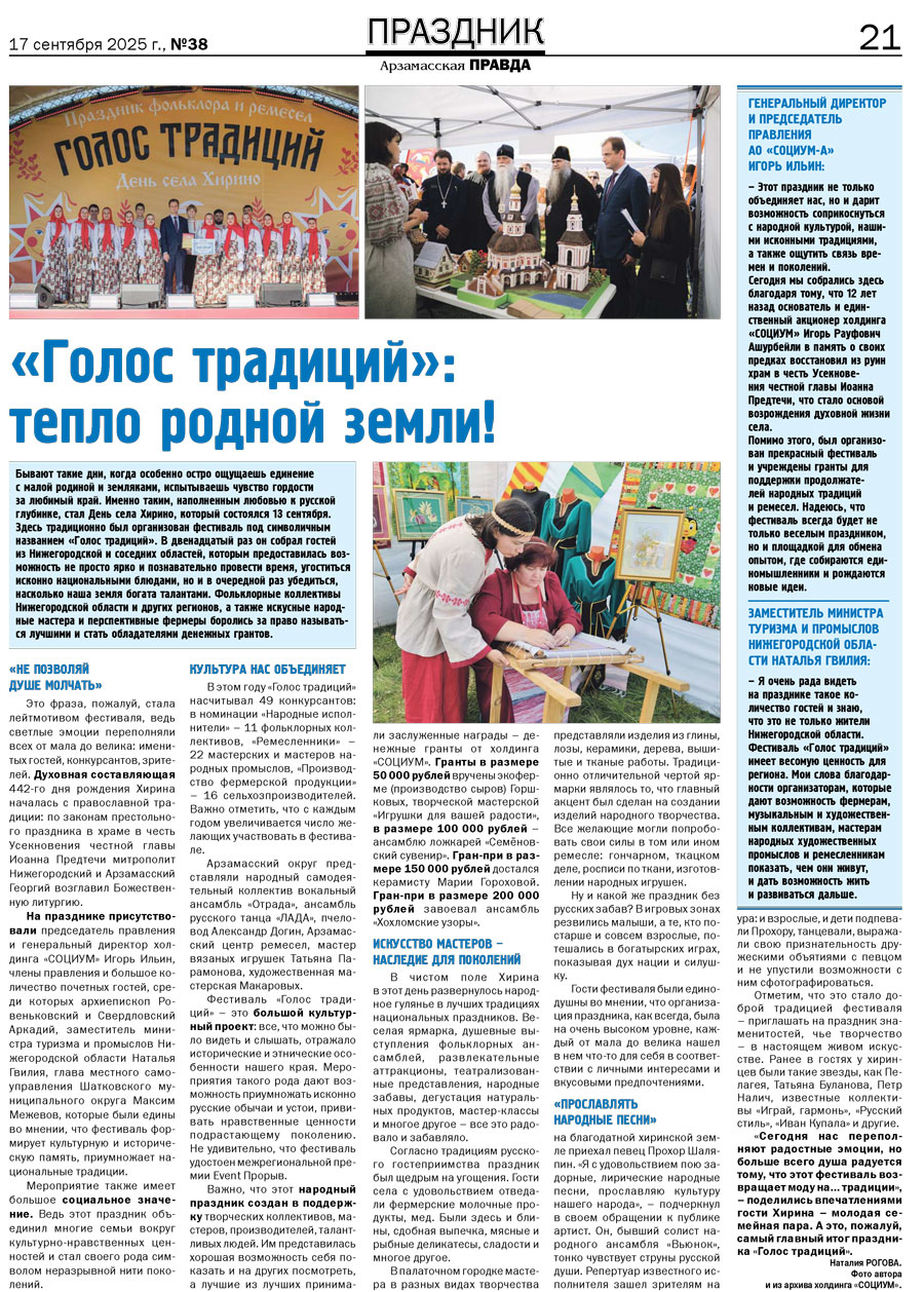Газета «Арзамасская правда»: «Голос традиций» — тепло родной земли!