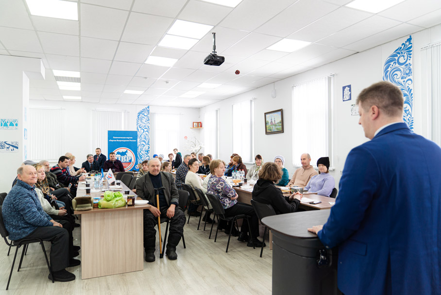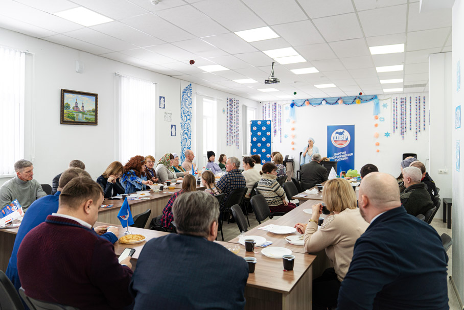 Едва блинное застолье закончилось, а артисты успели переодеться в будничную одежду, в Общественном центре началось ещё одно мероприятие с их участием: встреча хиринцев, в том числе членов Совета села, с Советом депутатов Партии Возрождения России, накануне проводившим здесь своё первое выездное заседание.