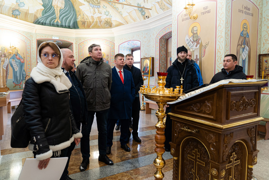 Настоятель храма иерей Владимир (Сергеенко) объяснил партийцам значение фресковых росписей у двух престолов – в честь Усекновения Честной главы Иоанна Предтечи и иконы Божией Матери «Живоносный источник». Незадолго до этой экскурсии в Храме завершилась служба, готовящая прихожан к началу Великого поста.