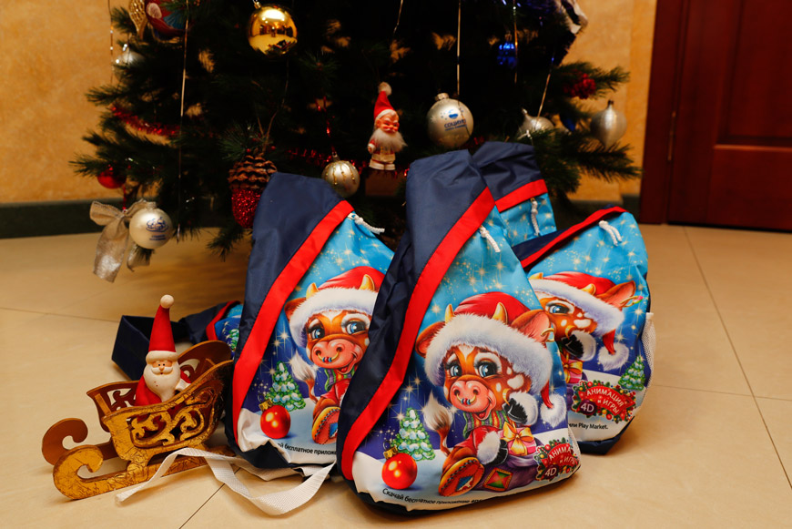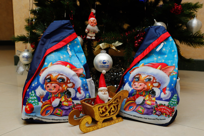 Но – и это хорошая новость! – поздравления детям от Группы компаний «СОЦИУМ» всё равно будут доставлены. Для ребят до 14 лет включительно в холдинге приготовлены сладкие подарки в удобном рюкзачке, украшенном симпатичным бычком – символом наступающего 2021 года.