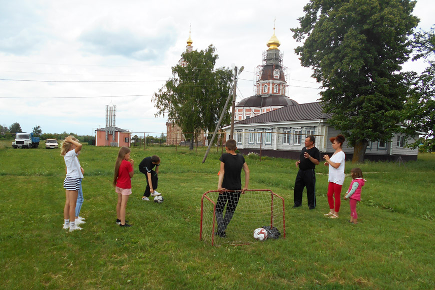 Иван Николаевич Паутов празднует с хиринскими ребятишками Международный день футбола