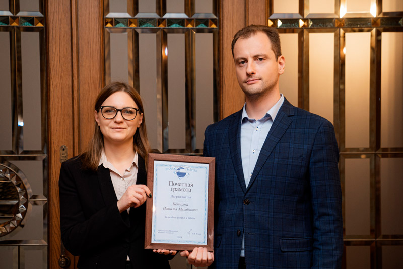 По итогам прошлого года меня наградили грамотой Правления. Была приятно удивлена, получив её. Я благодарна руководству, которое предоставило возможность проявить себя и создало условия для этого. Любому человеку приятно, когда его выделяют и отмечают, ведь это значит, что усилия и заслуги не остаются незамеченными. Для меня очень важно, что мои старания оценили. Спасибо нашему руководству за поддержку и признание.