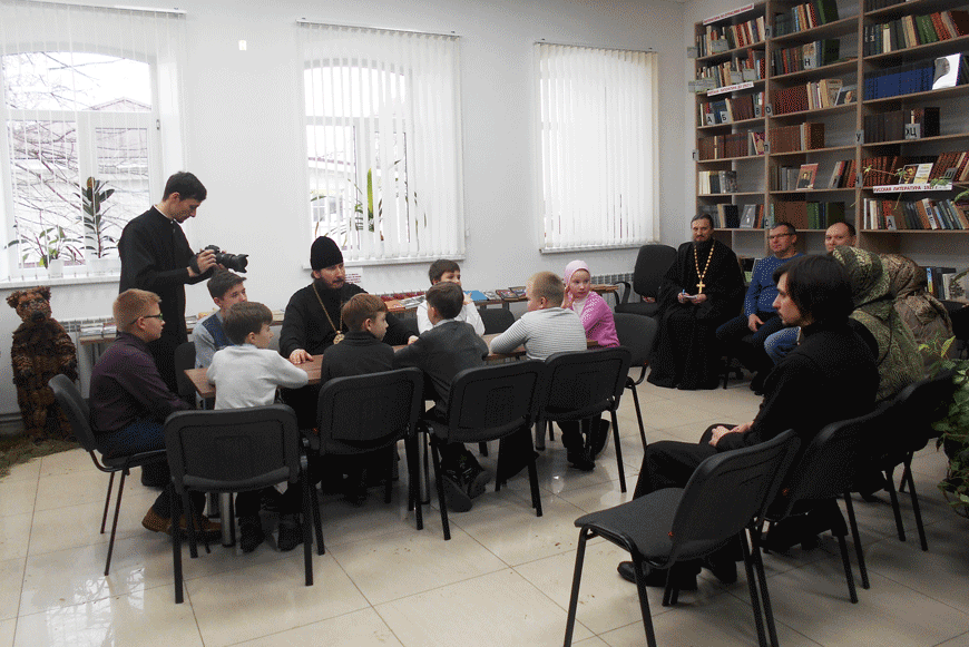 После службы владыка Силуан побеседовал с детьми, учениками Общественного центра. Собрались ребята, которым интересна жизнь храма и священная история. Для них важно было узнать, что значит воцерковиться, как становятся настоящими прихожанами.
