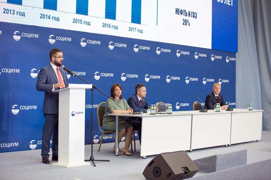 Перед началом конференции гости получили буклет, из которого уже стало ясно, что 2017 год оказался на редкость удачным для «СОЦИУМА». В самом деле, холдинг объединяет сейчас около 40 компаний и продолжает расширяться – реорганизуется направление «СОЦИУМ-Сооружение», в нём появилась новая компания «Москва-Сокол», управляющая недвижимостью в симпатичном столичном культурно-деловом квартале. В компаниях работают 8,5 тысячи человек, явное большинство – в реальном секторе. А самое интересное – в том, что «СОЦИУМ» заметен в добром десятке отраслей, охватывающих все сферы человеческой деятельности.