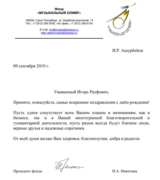 Ирина Никитина поздравляет Игоря Рауфовича Ашурбейли с Днем рождения