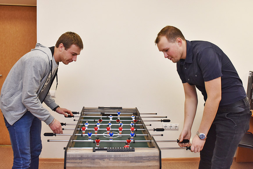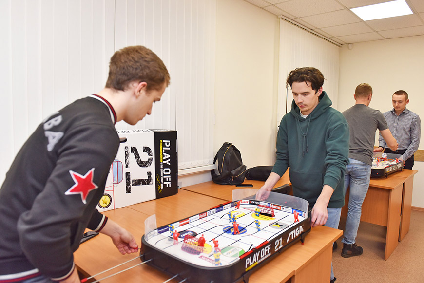 Соревнования, организованные Молодёжным советом АО «АПЗ», длились четыре дня. После работы молодые сотрудники завода спешили в здание отдела кадров. Здесь в учебном классе развернулись баталии по настольному хоккею и футболу.