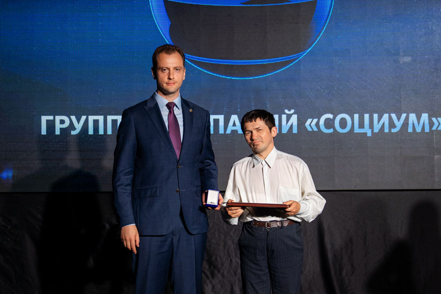 Игорь Ильин и Андрей Савинов на XI Конференции руководящего состава Холдинга «СОЦИУМ». Церемония награждения ветеранов Холдинга. 10 июня 2025 года