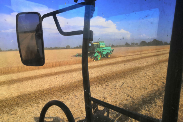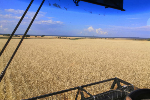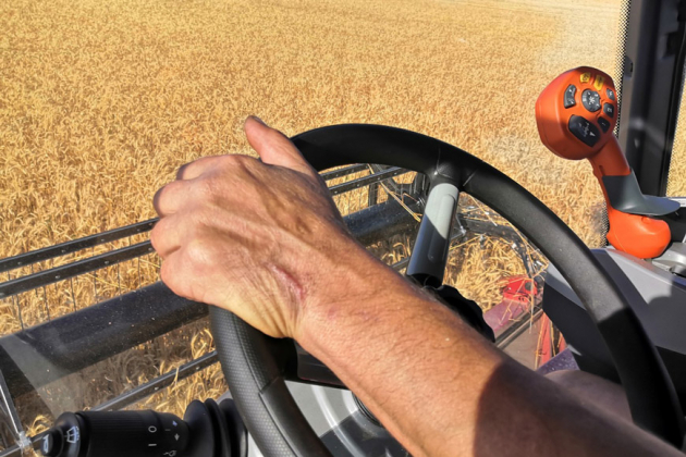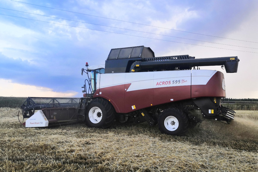 Первым делом убирают озимые. Новенький ACROS 595 Plus впервые вышел на работу. Это комбайн отечественного производства, по своим характеристикам приближенный к лучшим импортным аналогам. В один из дней современную комфортабельную кабину опробовал генеральный директор «СОЦИУМ-Агро» Олег Кухтенков.
