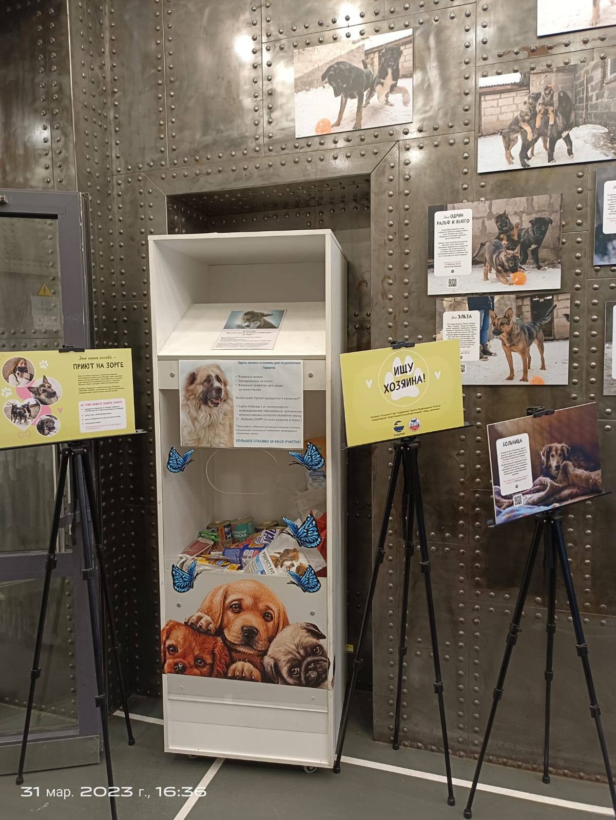 А рядом с фотографиями установили специальный ящик, в котором можно оставить корм и медикаменты для наших четвероногих соседей с улицы Зорге.
