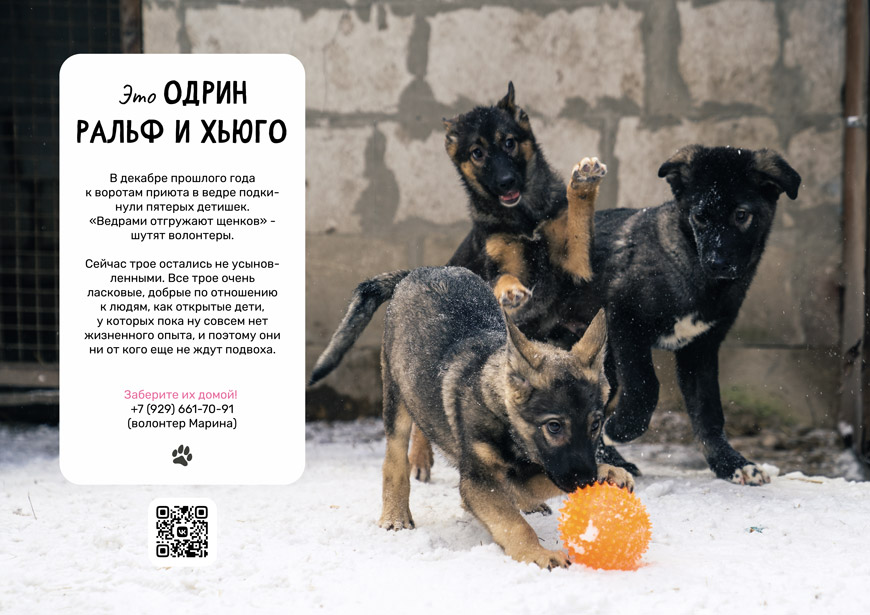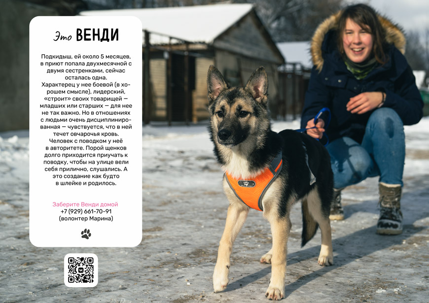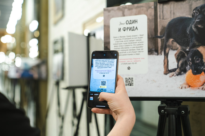 На фотографиях мы разместили QR-коды, ведущие на официальную страницу приюта ВКонтакте. И это принесло самый главный результат – у приюта стало больше подписчиков и больше донаторов.