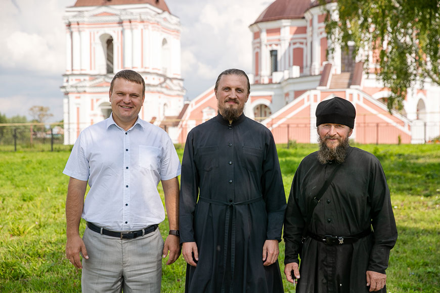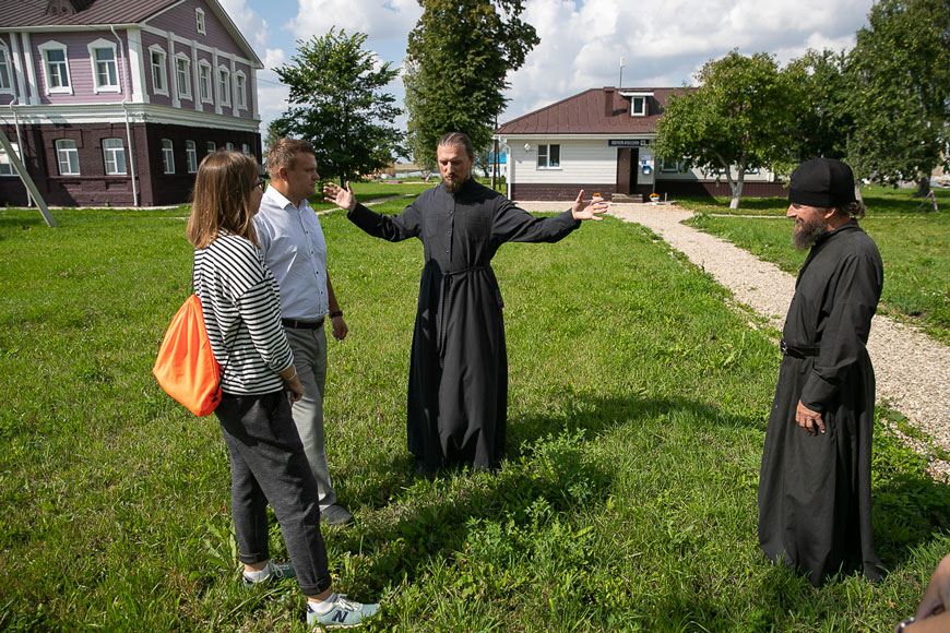Заключительный день нашей командировки 22 августа выдался насыщенным. С утра мы вместе с Денисом Шмелёвым встретились с протоиереем Василием Лютянским, который руководит Шатковским благочинием, и отцом Виктором Новиковым, настоятелем храма в честь Усекновения Честной главы Иоанна Предтечи. Расспросили представителей духовенства о работе хиринского прихода, поговорили о том, как изменилась жизнь села с открытием храма и Общественного центра.