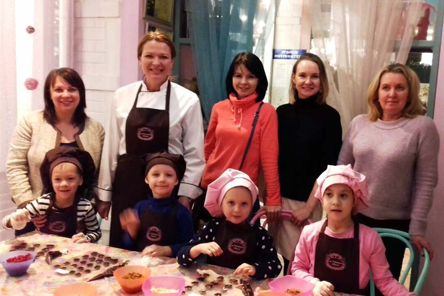 Занятие для семей сотрудников провела лично владелица ателье, известный шоколатье Алла Комиссарова.