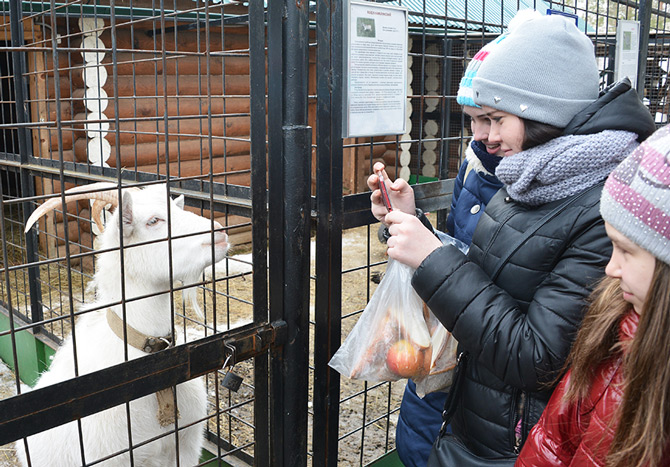Пребывание ребят в «Морозовском» началось с посещения местного зоопарка, где они встретили уже хорошо знакомых обитателей, покормили их, погладили. Уходить от животных совсем не хотелось, но праздник, развернувшийся на площади у охотничьего домика, зазывал весёлой музыкой.