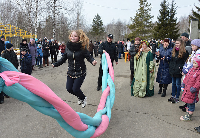 Здесь для ребят и всех собравшихся гостей была организована развлекательная программа с конкурсами, играми и песнями. Частушечники исполняли залихватские припевки, смельчаки бились подушками, запускали валенок из огромной рогатки, катались на санях... Не обошлось и без покорения традиционного масленичного столба с подарками. И, конечно, какая Масленица без блинов! Аромат от выпечки разносился по всей территории профилактория. Все желающие могли отведать блинчики с горячим чаем или глинтвейном.