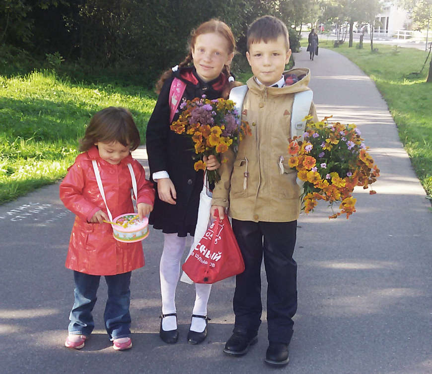 У Натальи Чистяковой, работающей инженером-технологом, также трое детей. Вместе с Артемием в школу в Зеленограде пошла и его старшая сестра Варвара, но уже во второй класс.