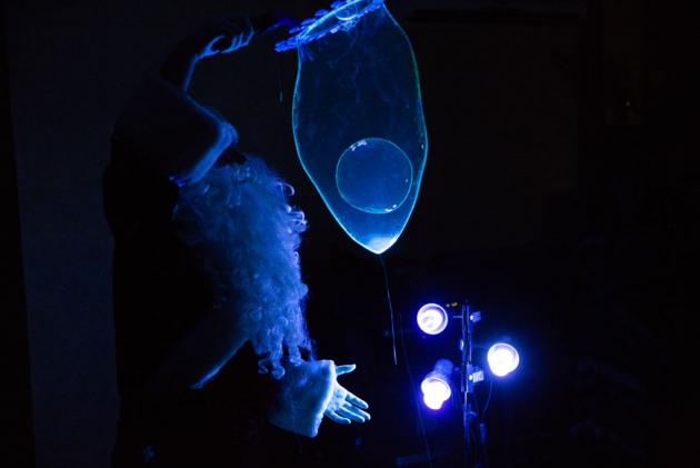 Какие только чудеса не творил волшебник! И радужные рукавички мастерил, и поджигал пузыри, и в теннис ими играл. А ещё погружал в сверкающий кокон, предлагая всем желающим оказаться внутри него и загадать желание. Между прочим, этим предложением воспользовались многие коллеги – кто в личных целях, а кто в общественных: «Я большое желание загадала, на всех!».