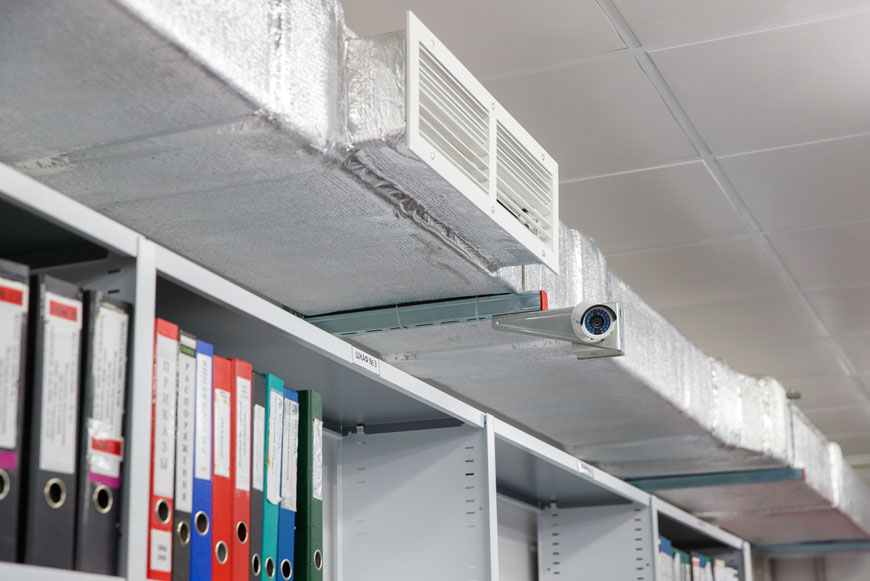 Основным предметом хранения в архиве является бумага. А бумага, как известно, хорошо горит, накапливает пыль (а вместе с ней и аллергены) и портится от влаги. От всего этого её надо защитить – обеспечить архив эффективной системой пожаротушения и дымоудаления, поддерживать определённый температурно-влажностный режим. Поскольку тут находятся особо важные документы, нужна ещё многоуровневая система доступа.