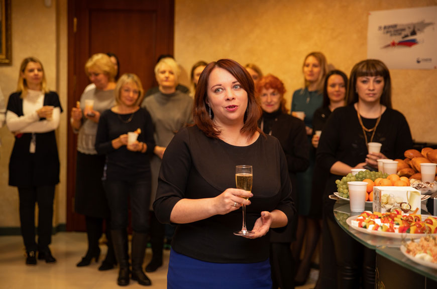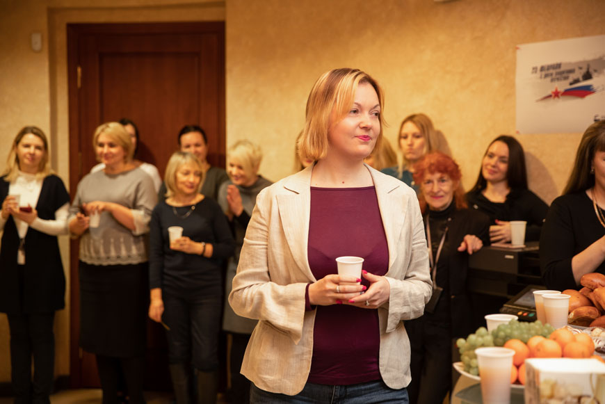 А здесь всех мужчин ждали тёплые поздравления от боевых соратниц, от лица которых выступили начальник Управления по работе с персоналом Ирина Никифорова и генеральный директор Центра культуры и бизнеса «МОСКВА-СОКОЛ» Анна Бочищева.