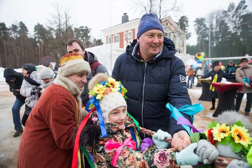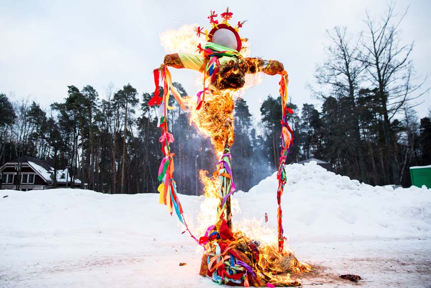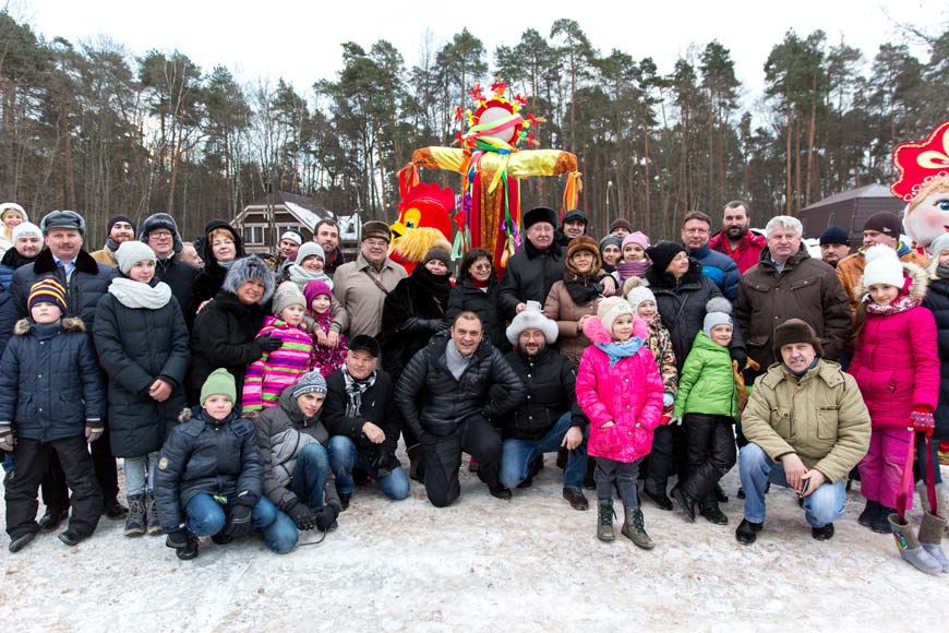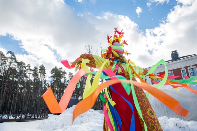 Когда гулянья на свежем воздухе приближались к завершению, всё внимание устремилось к Масленице. По старинной традиции бенефициар холдинга Игорь Ашурбейли привязал к соломенному чучелу алую ленту. Его примеру последовали все участники праздника. Это делается для привлечения удачи, исполнения желаний, а ленточки олицетворяют собой всё негативное, и они обязательно должны сгореть вместе с Масленицей.