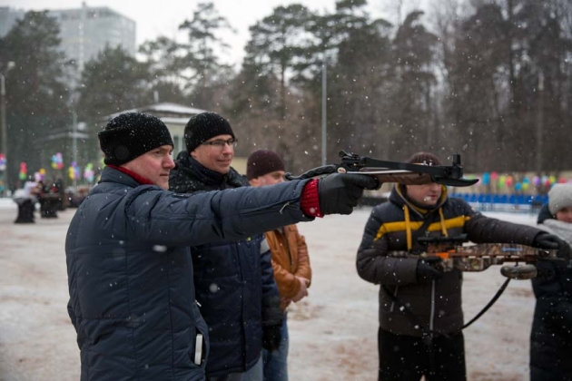 На другом конце площадки – стрельба из старинных арбалетов. Кстати, этот аттракцион привлекал не только сильный пол. Самым метким стрелком был признан Олег Лавричев, генеральный директор АО «АПЗ имени П. И. Пландина», серебро завоевал генеральный директор «СОЦИУМ-А» Руслан Ашурбейли. Ну а бронзовая награда неожиданно для всех досталась не крепкому мужчине, а хрупкой, но целеустремлённой девочке Злате Косяк.