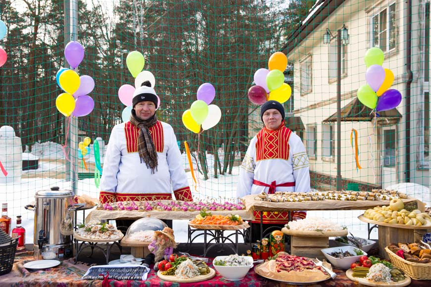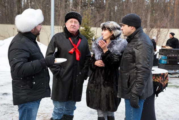 Праздник продолжился чаепитием, поеданием огромного торта в виде фигурки Масленицы и русскими народными песнями. В театрализованном выступлении фольклорного ансамбля «Матрёна-Арт» пришлось принять участие новому члену правления, коммерческому директору холдинга Владимиру Балашову.