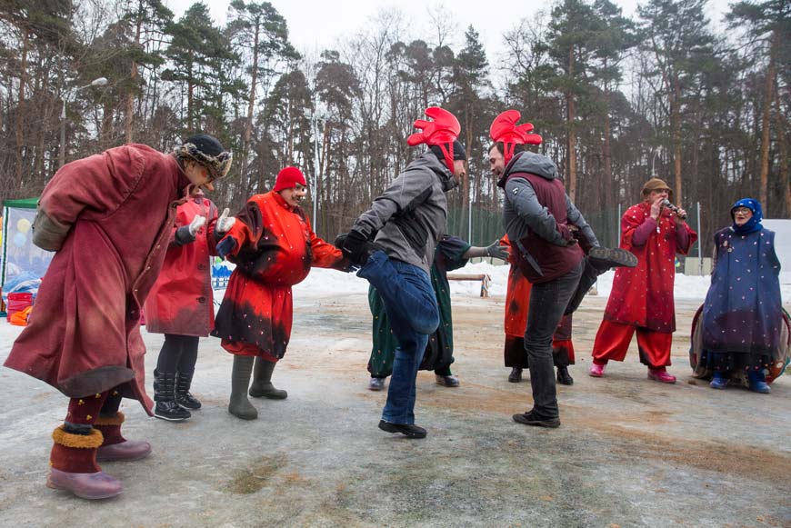 Специально для «социумовцев» и их семей в Покровском-Стрешневе были воссозданы разнообразные забавы, которыми потешали себя ещё наши предки, прогоняя надоевшую зиму.