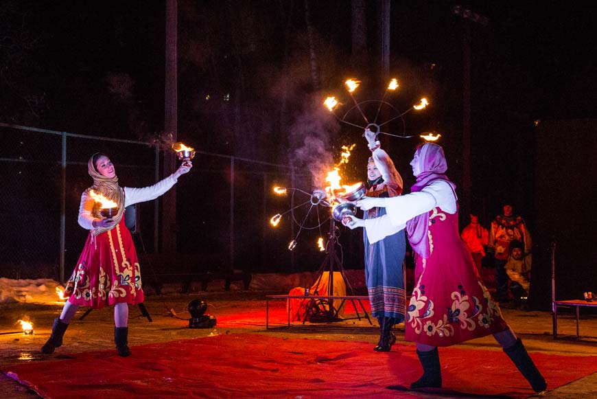 А когда стемнело, небо в Покровском-Стрешневе озарилось фейерверками да огнями, символизирующими обновление и скорый приход весны.