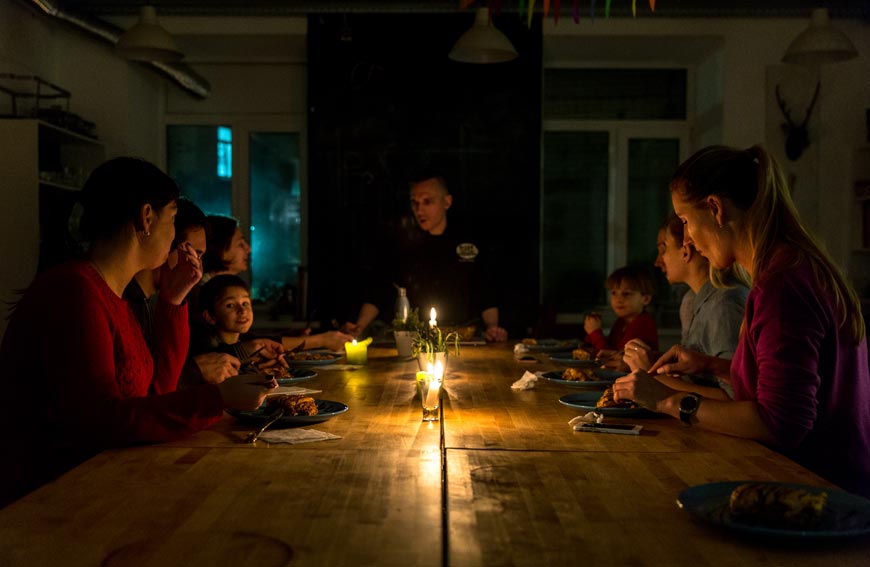 Каждый мастер-класс завершается застольем, когда гости пробуют то, что сами приготовили. А если им захочется подольше побыть вместе, они смогут воспользоваться соседней со студией комнатой, где есть караоке и настольные игры.