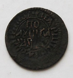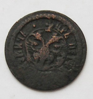 Полушка Пётр I (найдена в одном из огородов с. Хирино) |