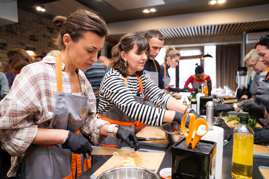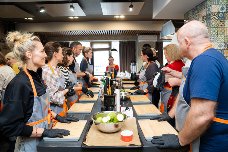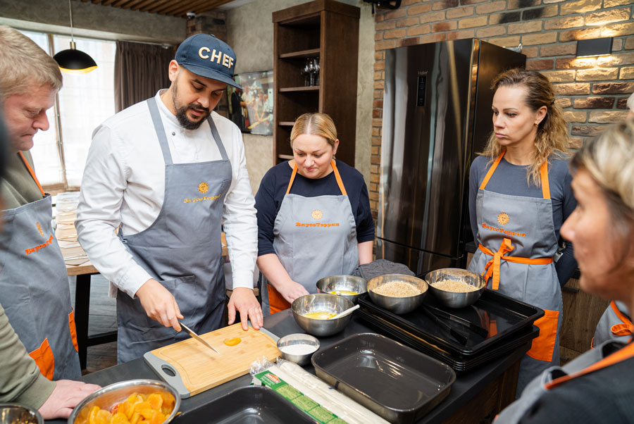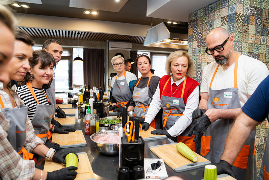 Необычная идея совместить кулинарию и тимбилдинг вызвала в коллективе разные эмоции. Кто-то признался, что ждал такого формата, другие предпочли бы квест или спортивные состязания. Но как только все собрались в студии «Вкусотеррия» на кулинарной дуэли, сомнения растаяли, как масло в сотейнике.