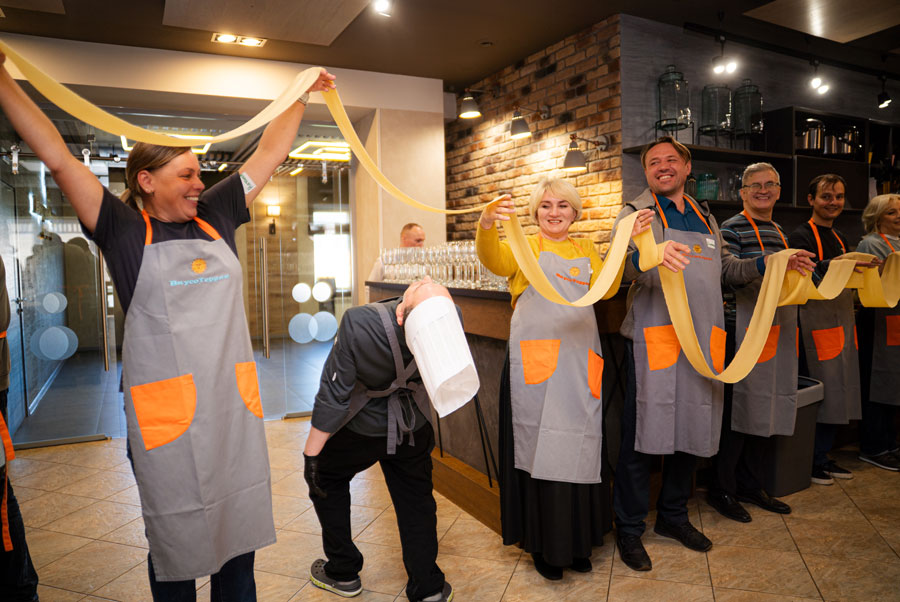 Это была инициатива нашего генерального директора Светланы Евгеньевны Хименко и начальника отдела по работе с персоналом Ксении Поповой. Они предложили попробовать такой необычный формат, чтобы совместить развитие командных навыков с творческим процессом. Мне кажется, в этом есть особая символика, ведь и работа и готовка строятся на правильном распределении ролей и доверии друг к другу.