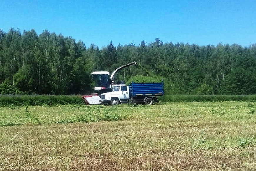 В перевозке сенажа задействованы 5 единиц техники из парка компании: автомашины и трактор МТХ-82, а также машины ГАЗ- 3309, ЗИЛ-130. В поле работает кормоуборочный комбайн DON 680М.
