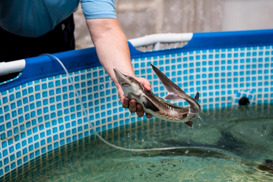 Но технологию отрабатывают не только на сомах. В одном из бассейнов выращивают рыбу, которая с древних времён является символом русской кухни и большим деликатесом. В Хирине живут самые яркие представители семейства осетровых – стерляди.