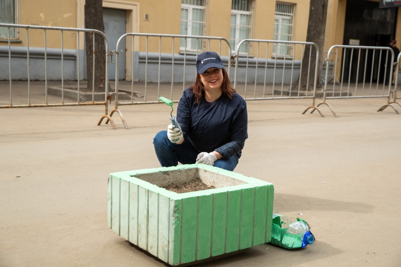 20 апреля улица Балтийская пестрела синими футболками и синими кепками с логотипом «СОЦИУМ-СОКОЛ». Субботнее утро прошло ярко: под корпоративными цветами «СОЦИУМА», а также под знаком жёлтой и зелёной краски, которыми красили вазоны, бордюры и ограждения. Красить и не испачкаться краской – это невозможно. Впрочем, такие мелочи мало кого волновали в этот день… Таким и должен быть настоящий субботник: вдохновенным.