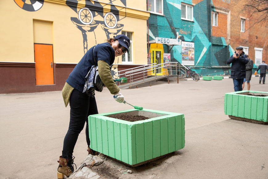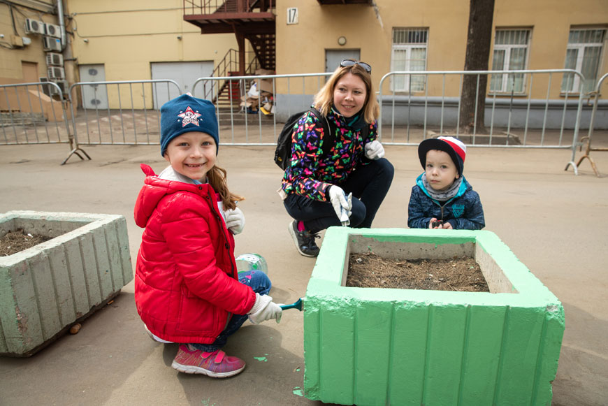 20 апреля мы участвовали в самых разных работах: высаживание кустарников, посев нового газона, уборка, покраска. Нам с удовольствием помогали дети. Слышала, как одна из девочек сказала маме: «Я теперь знаю, кем стану: маляром!».
