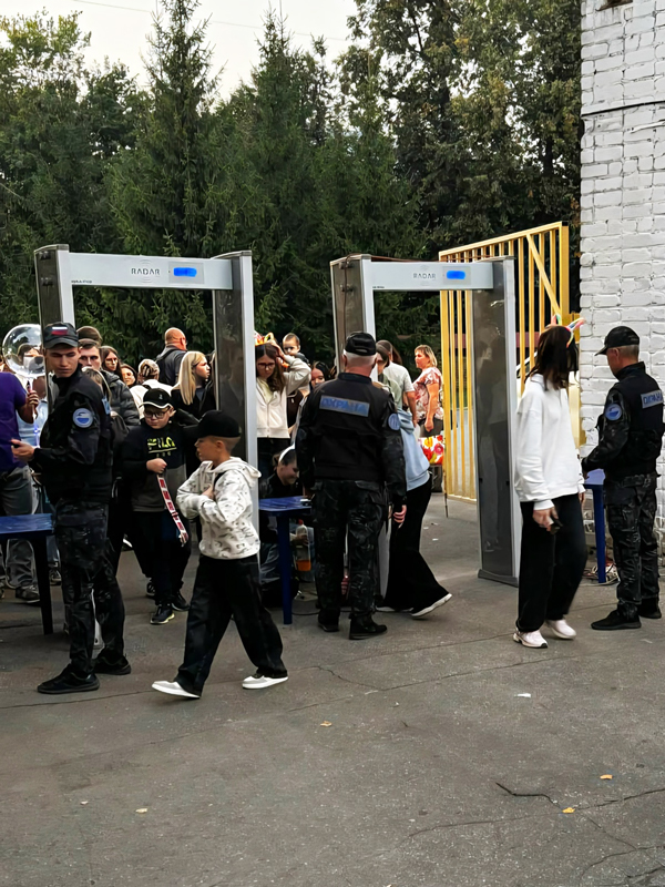 В день праздника группа охраны закрепилась на стадионе «Знамя» за два часа до начала концерта, чтобы провести осмотр территории, выявить критические точки и установить металлодетекторы. С началом представления на стадион хлынул поток людей, который начал иссякать только ближе к девяти часам вечера. Сцена находилась в сотне метров, но понаблюдать за происходящим на ней бойцам ЧОП удалось всего несколько минут.