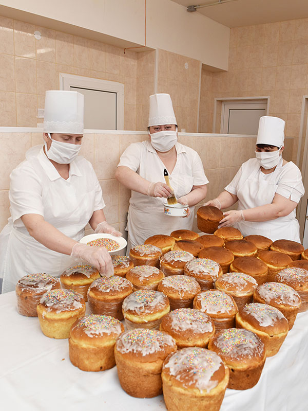 – В этом году, из-за того что часть коллектива находится в самоизоляции, заказов на куличи поступило немного – всего 300. Раньше мы пекли в два раза больше, – говорит директор комбината питания Любовь Васляева.