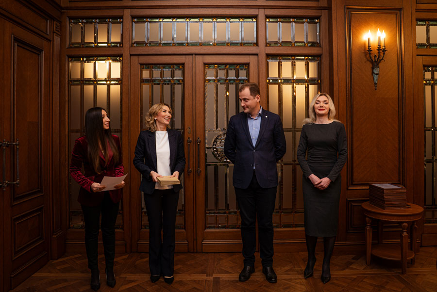 Председатель Правления холдинга «СОЦИУМ» Игорь Ильин и члены Правления – корпоративный директор Наталья Волчкова, главный бухгалтер Светлана Дудова и директор по персоналу Екатерина Саркисова – вручили коллегам заслуженные награды 22 декабря на церемонии в главном офисе.