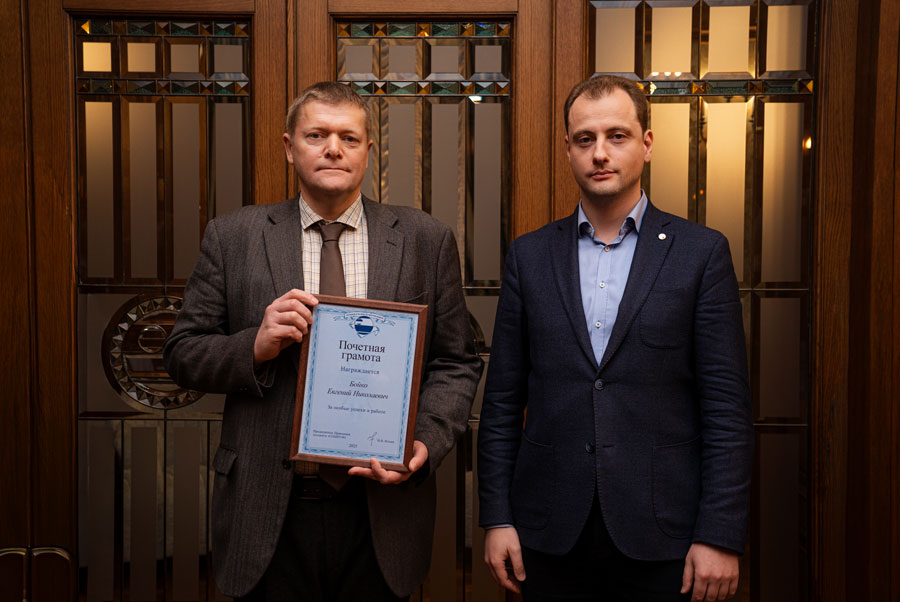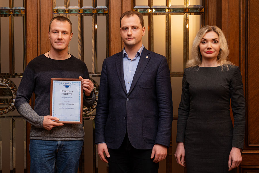 В компании «СОЦИУМ-ТЕЛЕКОМ» грамоты вручили Ярославу Кулагину за развитие сети передачи данных и руководство отделом, а также Ивану Степанову – за высокий уровень технического обслуживания сотрудников холдинга.