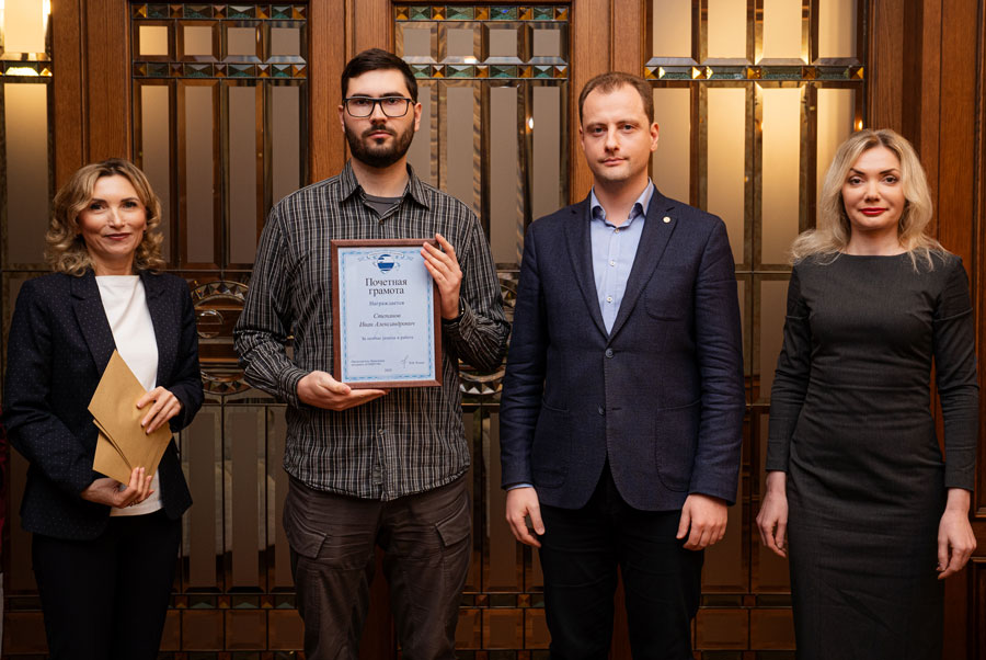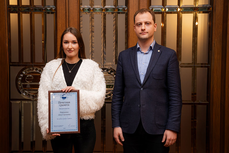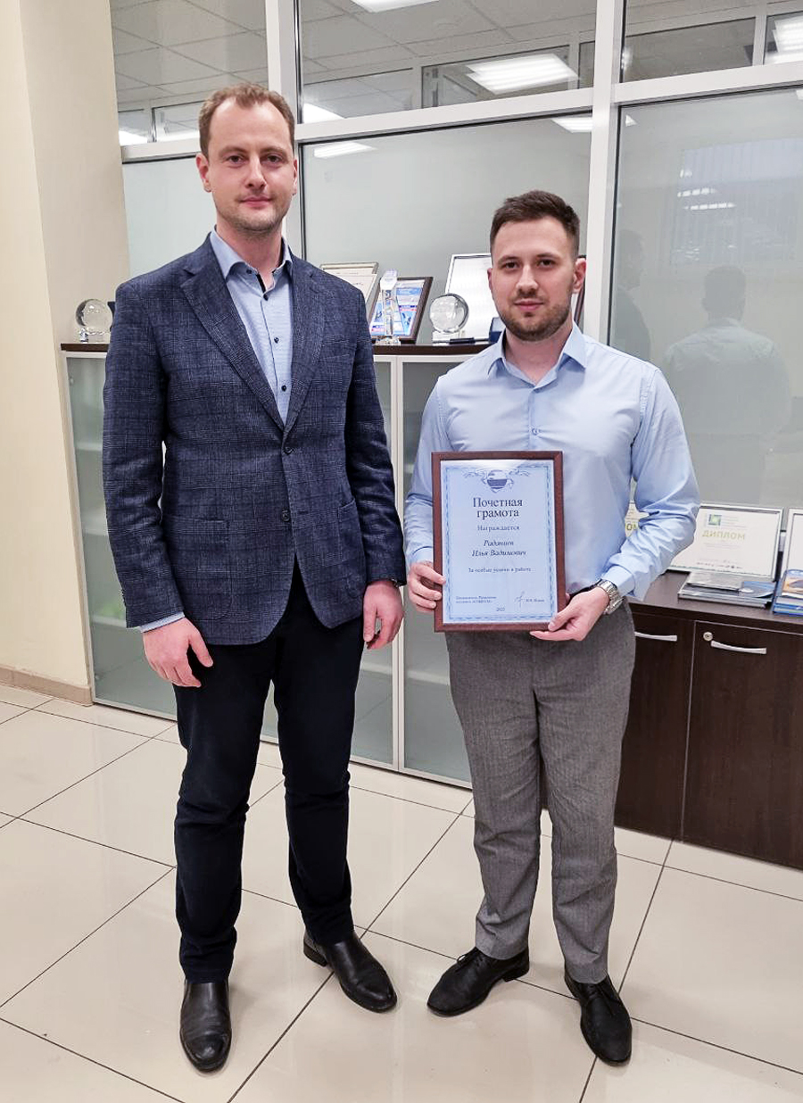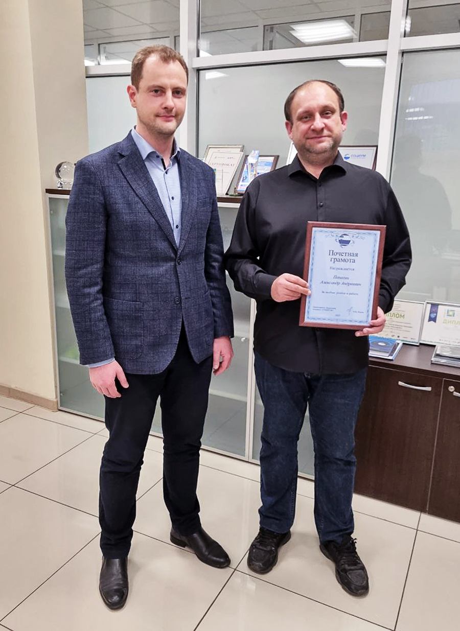 Юлия Железнова получила грамоту за умение руководить коллективом при нарастающем объёме работ, Илья Раданцев – за грамотность, трудолюбие и умение донести конструкторскую мысль до коллектива.