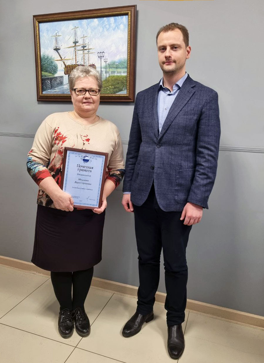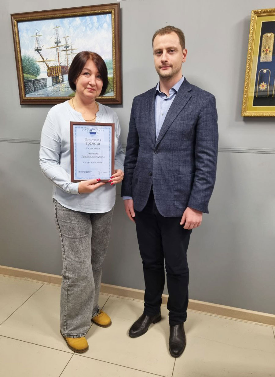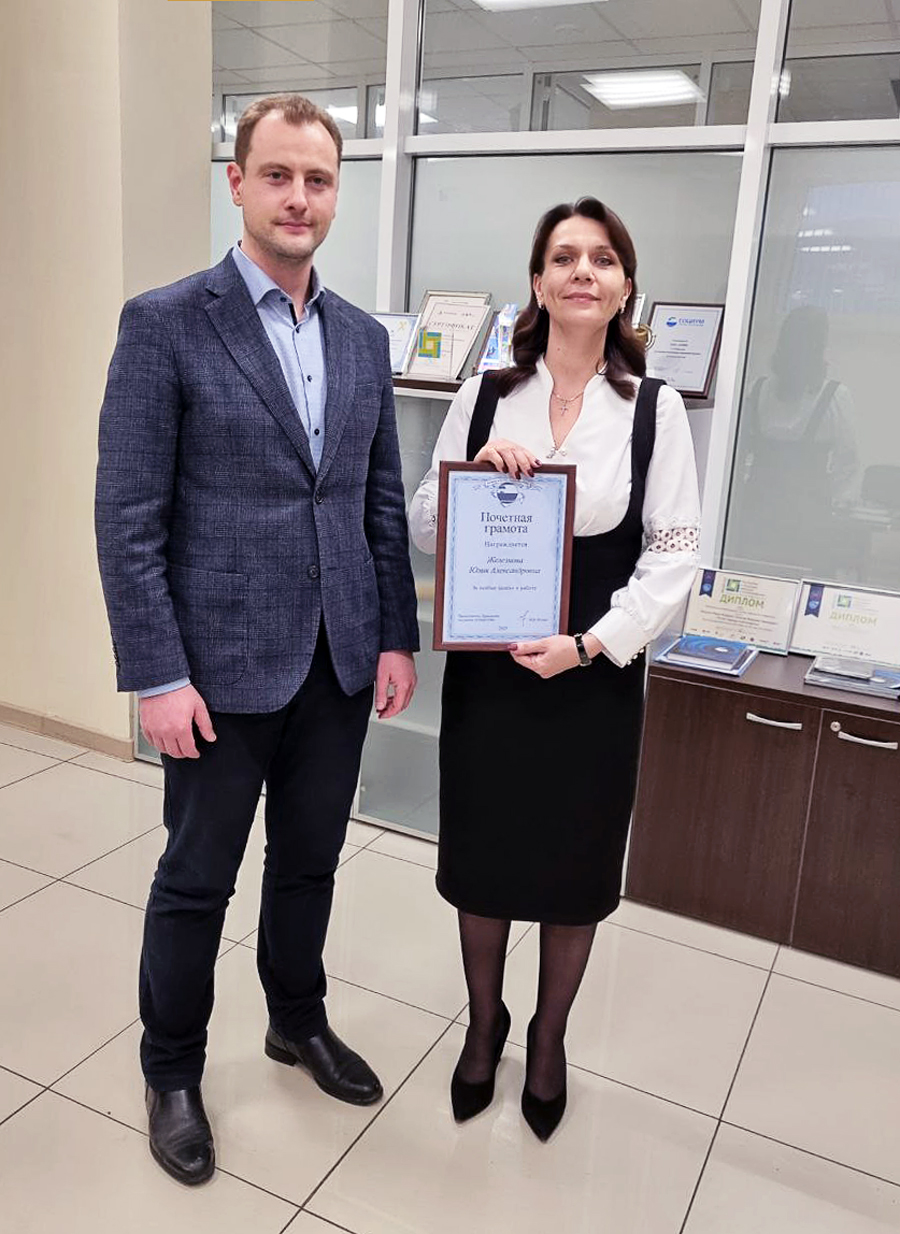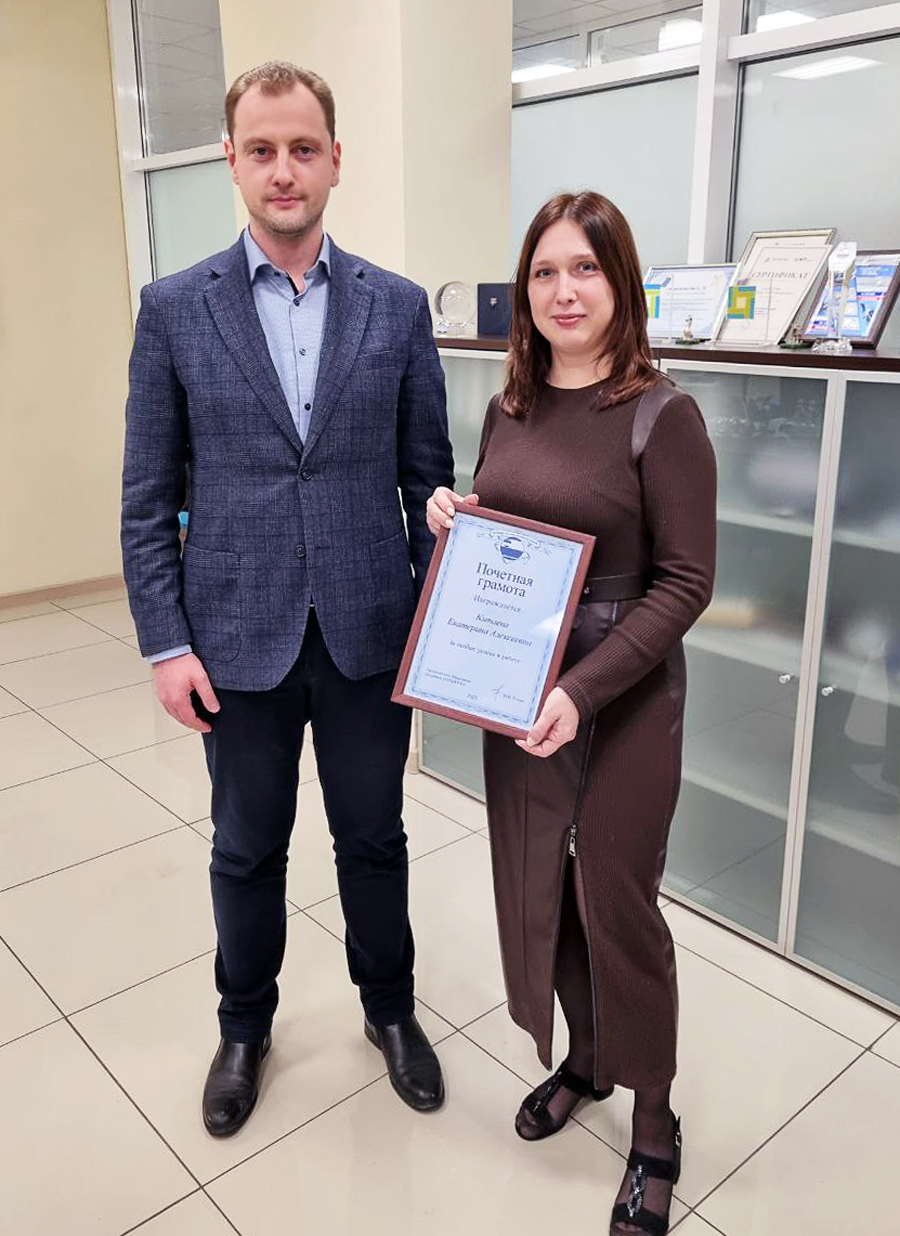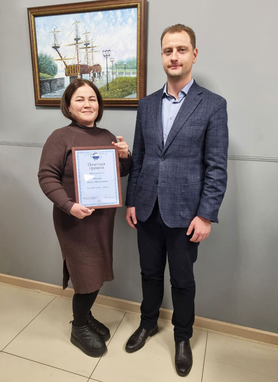 Анна Кирюшина получила грамоту за актуализацию отчётности в соответствии с современными требованиями к экологической безопасности предприятия.