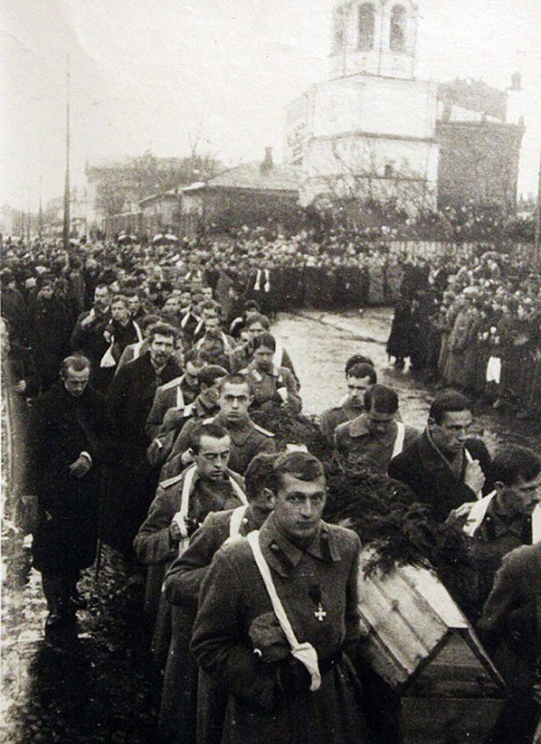 Траурная процессия с телами юнкеров в гробах на Братском кладбище. Фото: nasha-derzhava.livejournal.com