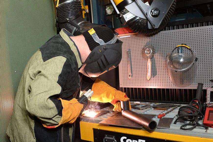 Сварщик Алексей Макаров в процессе работы (практика)