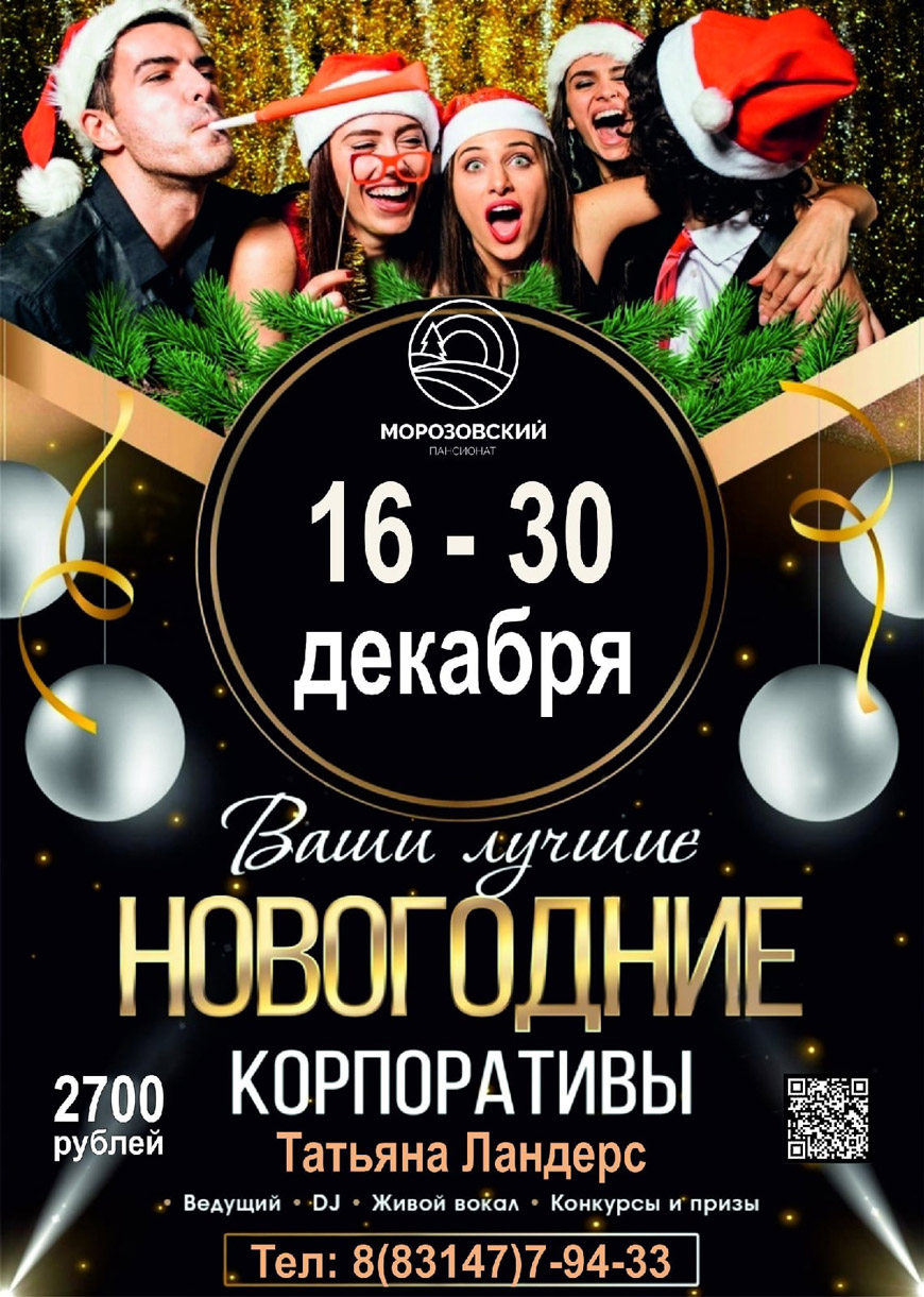 Пансионат традиционно приглашает компании отпраздновать Новый год на своей территории. «Морозовский» расположен в лесу, благодаря этому даже взрослые почувствуют себя так, словно очутились в новогодней сказке.