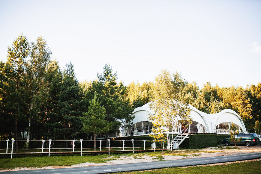 - Большой белый шатёр на берегу озера вместимостью до 300 человек;