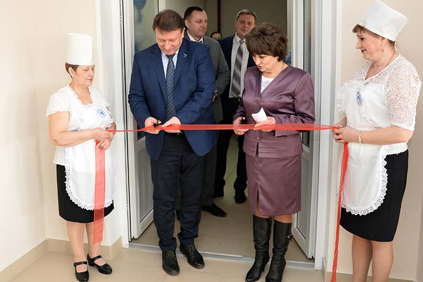 На торжественной церемонии открытия 14 марта красную ленточку под общие аплодисменты разрезали генеральный директор предприятия Олег Лавричев и директор комбината питания Любовь Васляева.