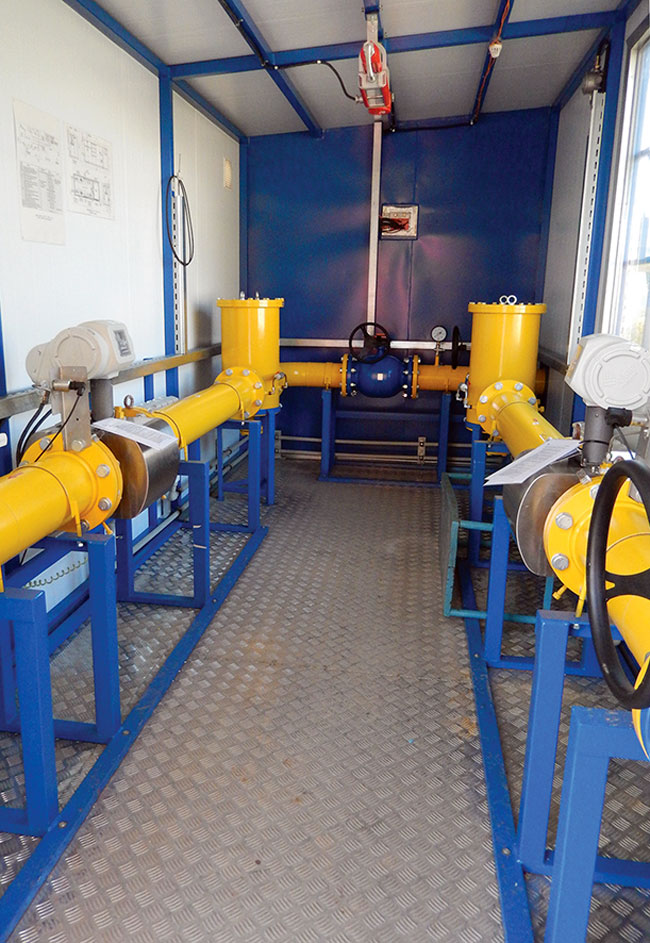 – В модульном контейнере установлены ультразвуковые шестиканальные расходомеры газа европейской компании, – рассказывает Сергей Юматов. – Они надёжные, без механических частей. Это значит, что вероятность их поломки низкая, они практически не требуют обслуживания. Корпус изготовлен из низкотемпературной углеродистой стали, на внешней стороне имеется интерфейс пользователя с широким графическим экраном для управления при помощи касания. Срок эксплуатации счетчика составляет порядка 25 лет, поверочный интервал – шесть лет.