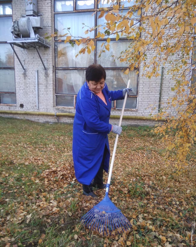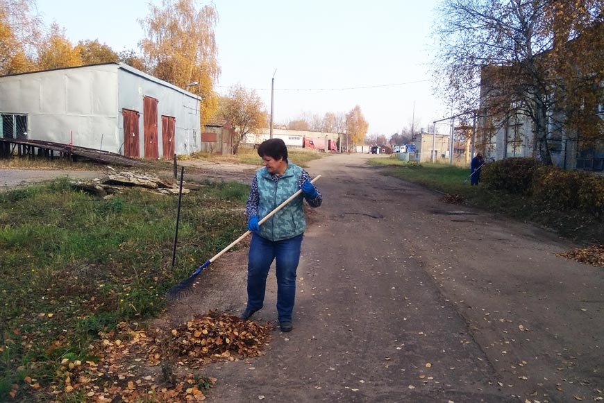 Золотая осень в этом году удивительная, радует своей красотой. Однако эту «красоту» надо убирать, и тут дворнику одному не справиться, особенно на такой большой территории, как у АО «МПЗ».