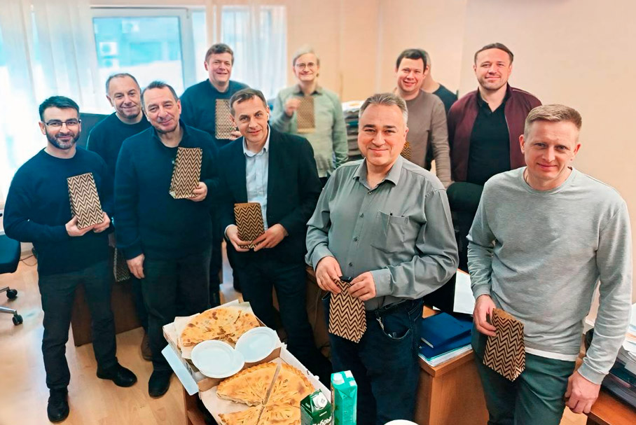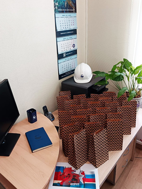 Приятным дополнением к тёплым словам стали памятные подарки для мужчин с корпоративной символикой Холдинга.