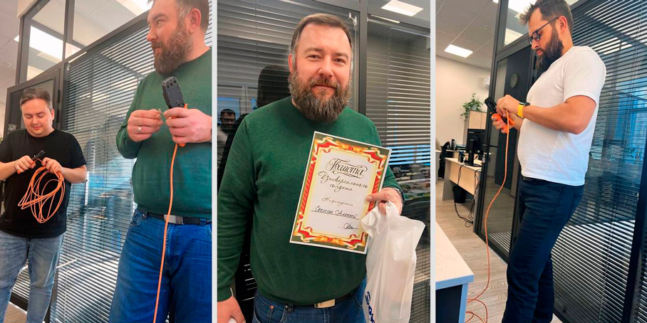 В телекоммуникационной компании Холдинга тоже отметили День защитника Отечества. Мужчинам пришлось побороться за подарки: девушки подготовили конкурс, где участники демонстрировали свои профессиональные навыки в IT-сфере.